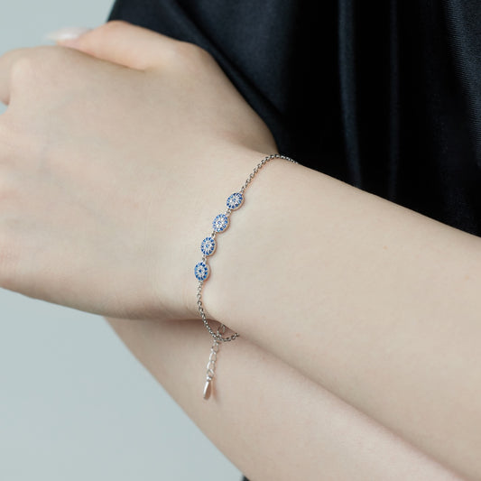 Four Evil Eye Crystal Rhodium-Plated Bracelet