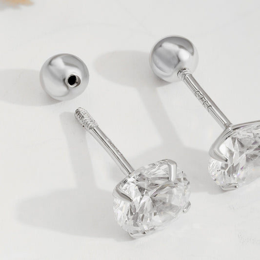 3-in-1 Round Crystal Rhodium-Plated Stud Earrings