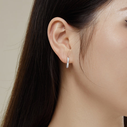Princess Cut Square Rhodium-Plated Stud Earrings