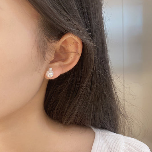 Minimalist Heart Halo Rhodium-Plated Stud Earrings
