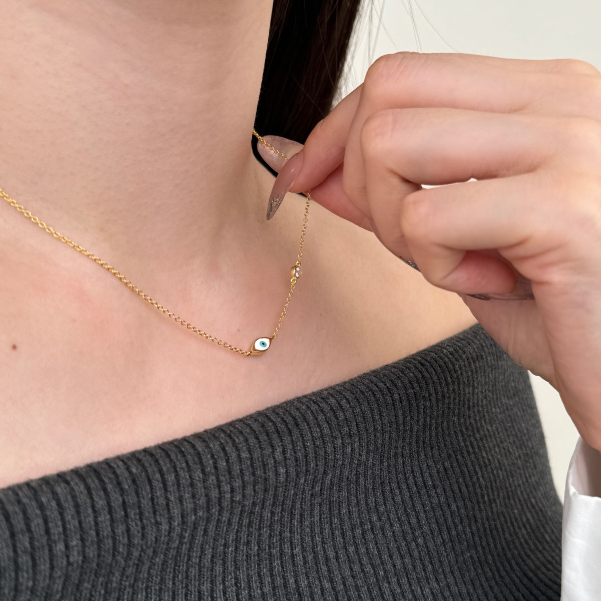 Evil Eye Bezel Rhodium-Plated Necklace