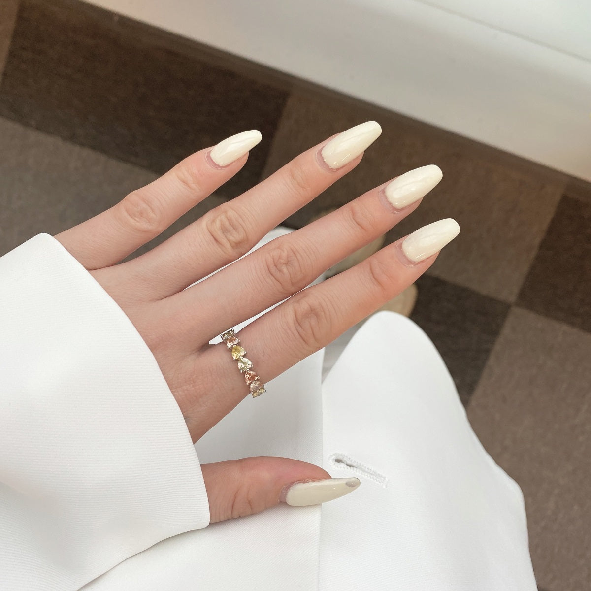 Multicolor Row of Hearts Rhodium-Plated Ring