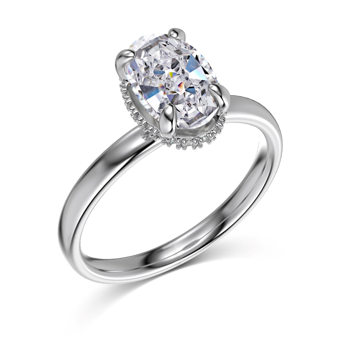 Oval Cut Hidden Halo Rhodium-Plated Ring
