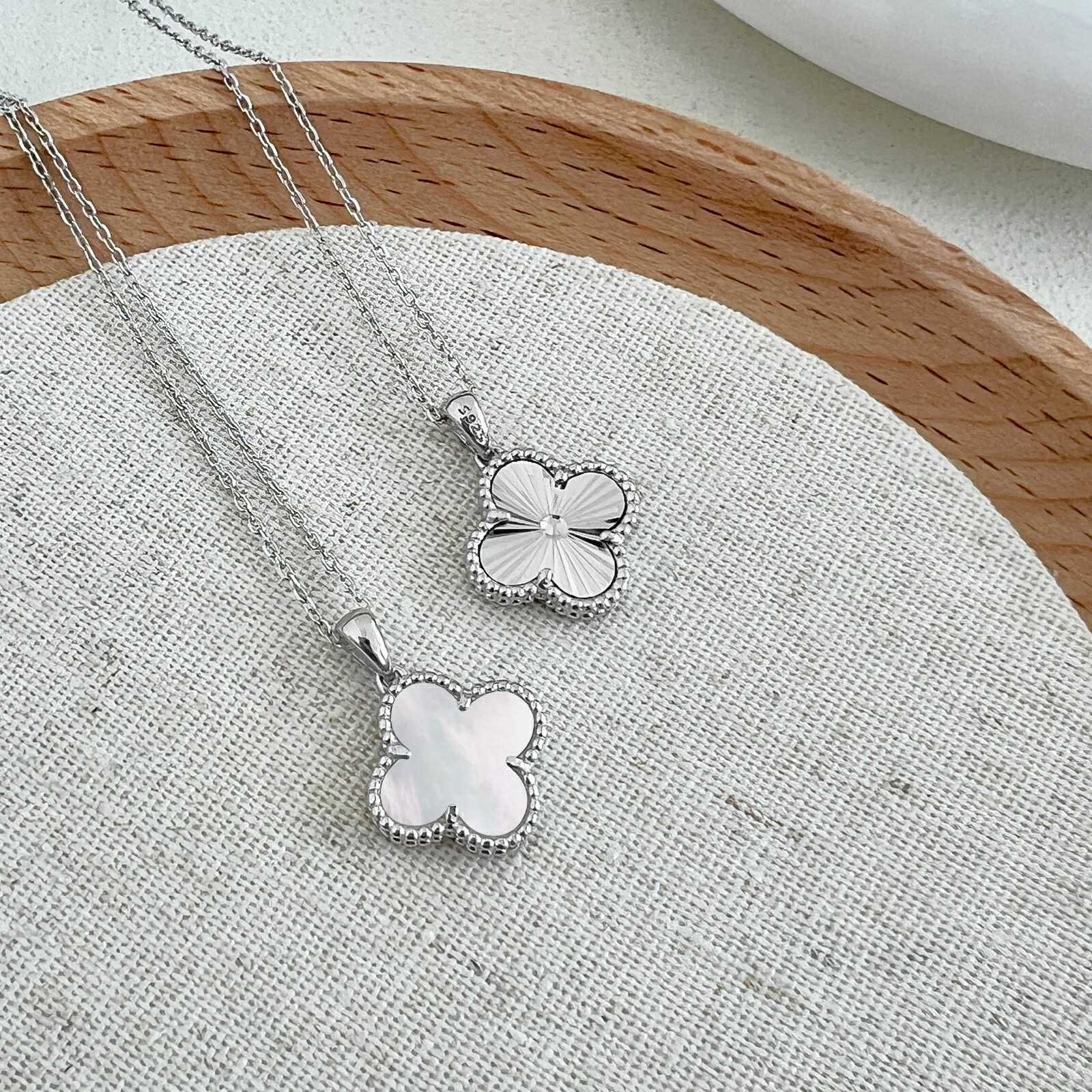 Reversible Clover Rhodium-Plated Necklace